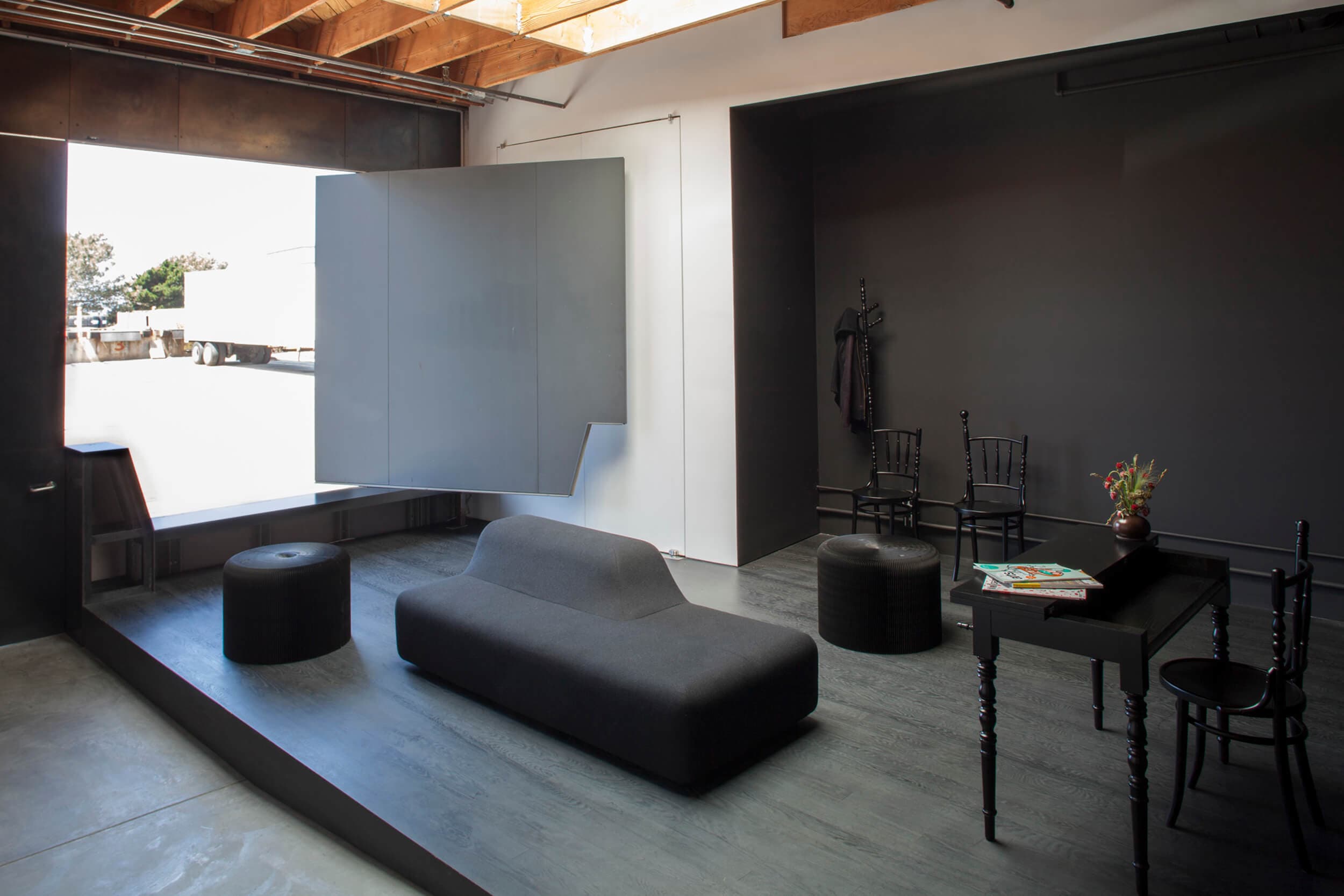 An auxiliary space for John McNeil Studio, a multidisciplinary creative firm, the Annex is both functionally and literally a transformer. The dynamic facade and “lobby” open up or shut down as needed. In its base condition the former warehouse exists as a gallery. A floor to ceiling storage wall extends the length of the space and holds a range of programmatic activators.